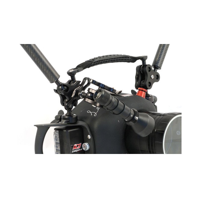 Pinza especial para bloqueo de bolas, diseñada para ser utilizada como accesorio trípode. Permite apretar 3 brazos al mismo tiempo con bolas de 2,5 de diámetro (como los brazos de Carbonarm). En la parte superior hay una bola SF / MC con una rosca ciega M6 que permite enganchar en el agarre para el ajuste de la cabeza del soporte.