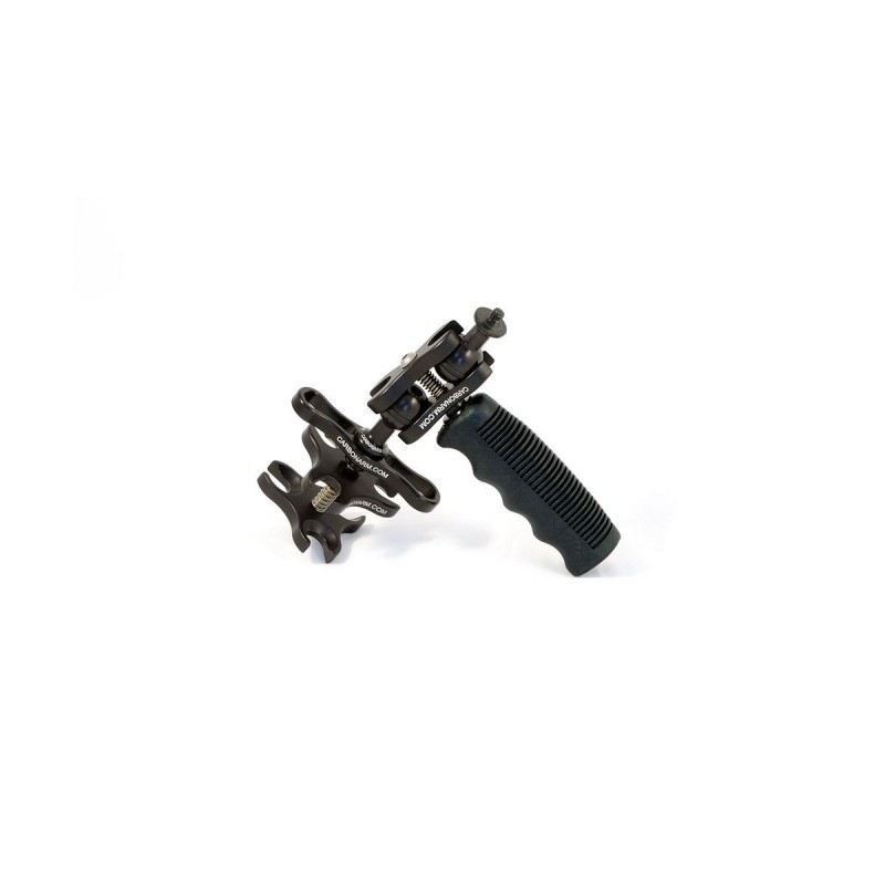 Poignée en PVC et en aluminium anodisé anticorodal, dotée d'une pince simple ouverte CP / 2A permettant d'ajuster rapidement l'inclinaison et l'angle de la tête du trépied.
